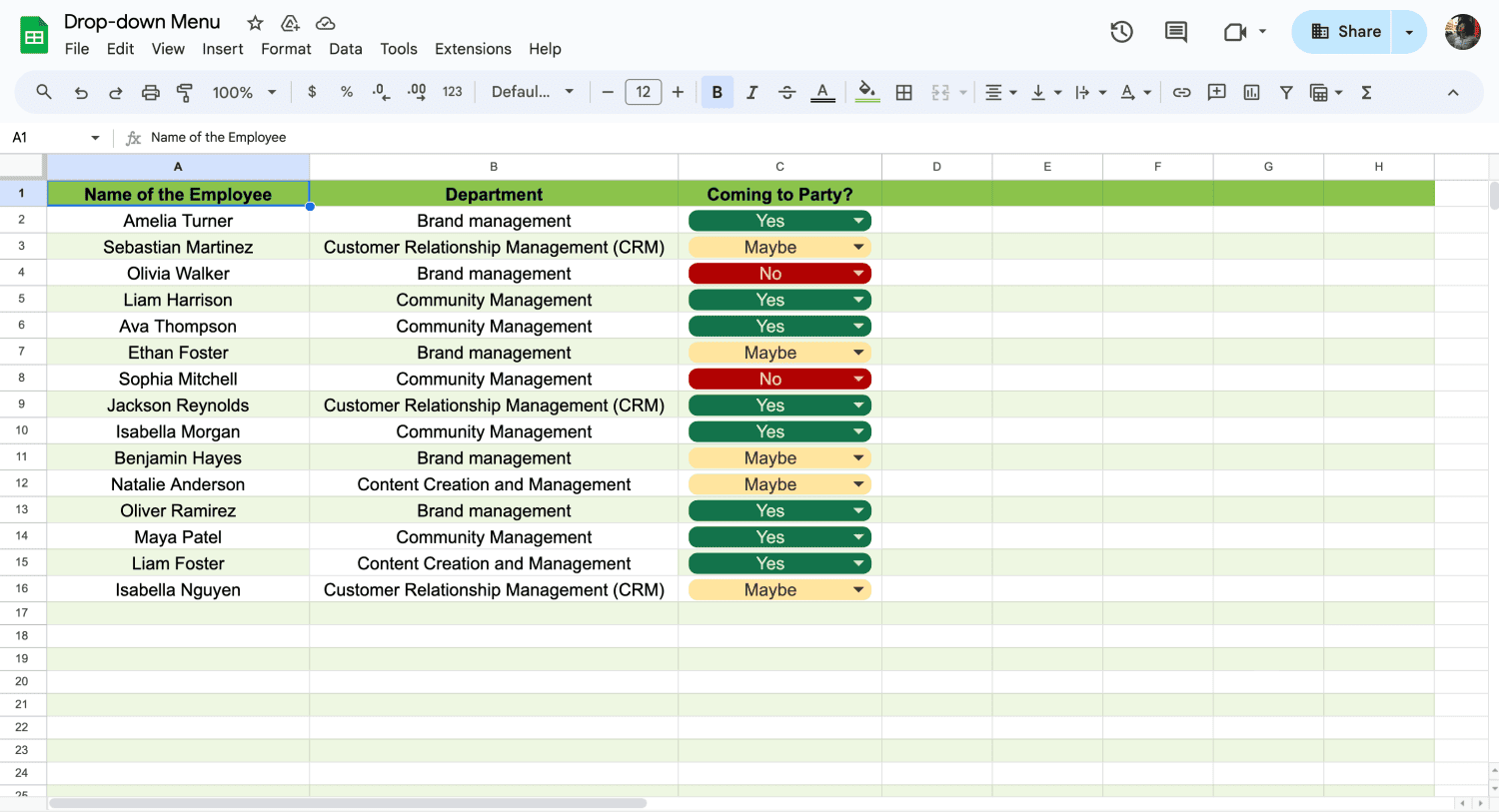 Create a dropdown menu to limit data entry to specific options in cells. Ut enhances consistency and reduces errors. Set this up to Data > Data Validation, and select the cells where you want the dropdown.