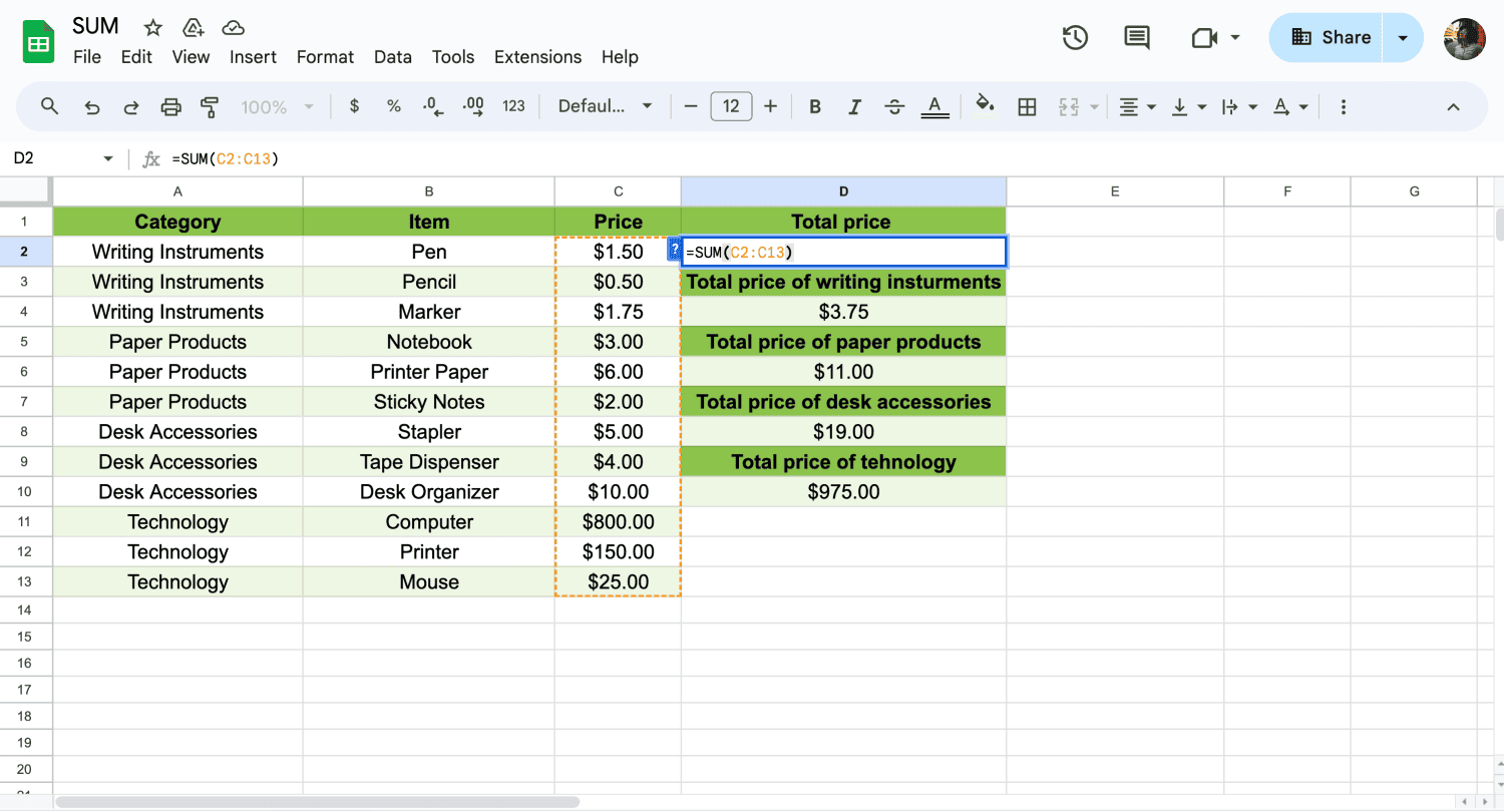 Showing formulas in your cells instead of the computed results can help with troubleshooting and auditing your work. To display formulas, press `Ctrl + “ (grave accent) or go to View and select Show > Formulas This makes it easier to review and edit the formulas in your spreadsheet.